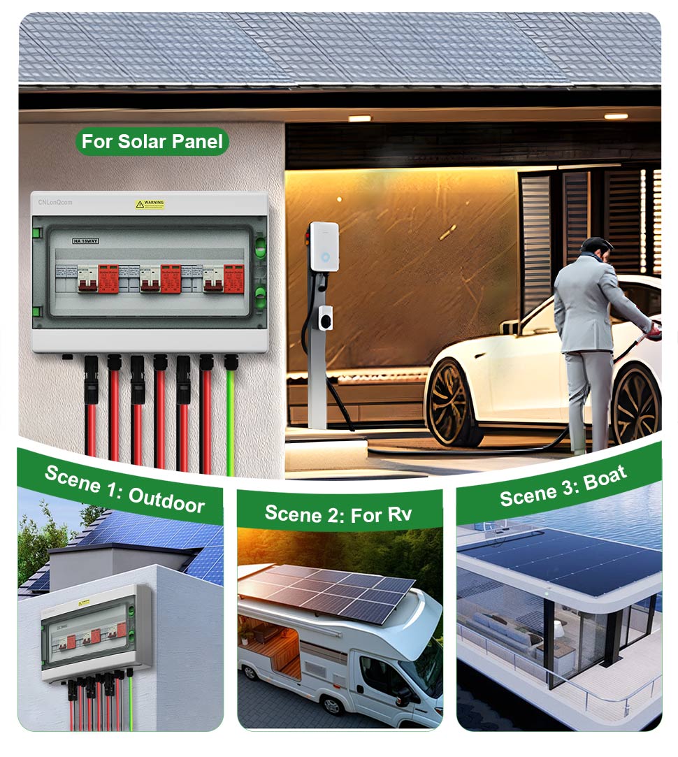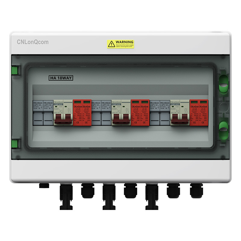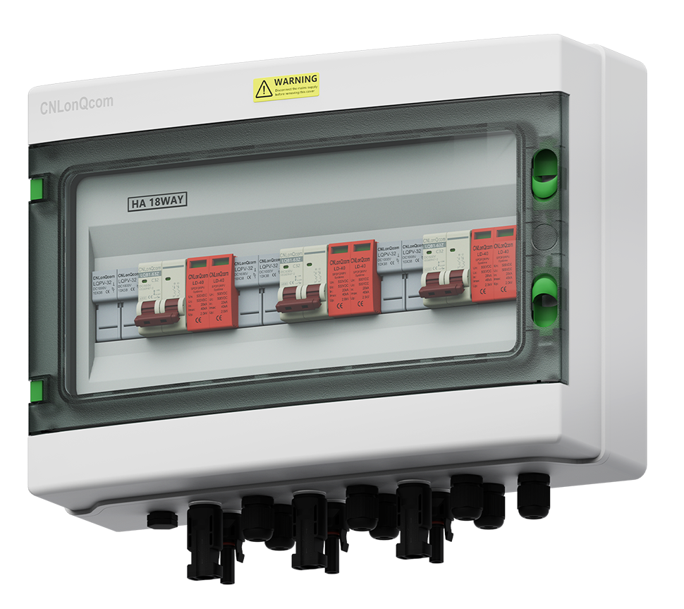 CNLONQCOM: s HA Series Plastic PV Combiner Box 3 i 3 OUT DC500V/600V/800V används huvudsakligen för att skydda PV-system och används ofta i rutnät eller nätanslutna system. Som PV -paneler, husbil, båt, utomhus PV, hushåll, etc.